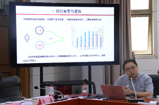 上午场报告,由曹卫东副院长主持;下午场报告,由吴九兴副教授主持;上下午共有11位专家作了学术报告。这些场学术报告围绕耕地生态保护与生态修复、国土空间高质量布局、乡村聚落空间重构、国土空间不确定优化、城乡转型下村镇建设格局演变、区域策略对城市土地市场影响、都市圈三生功能关联网络、景观可持续的国土空间治理、碳汇空间治理与价值实现等主题,进行了充分展示与交流。