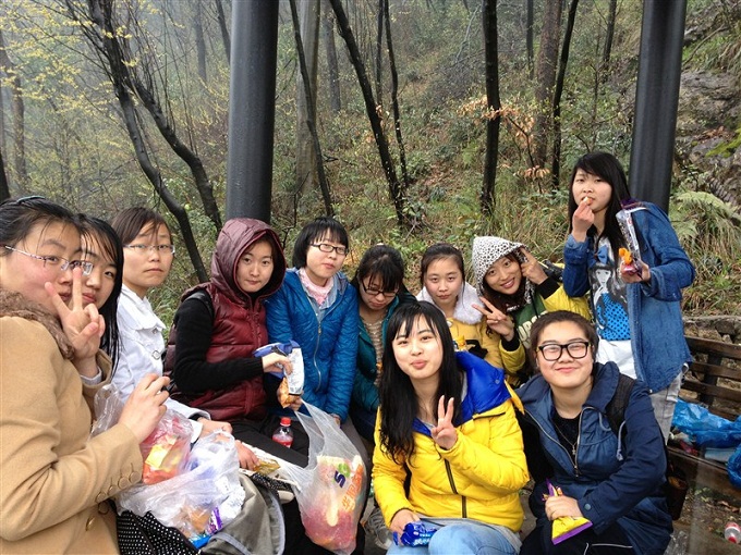 雨越下越大,大家整理好雨衣鞋帽,继续向月亮山进发,雨声哗啦作响,这增加了登山的难度,老师同学们相互加油打气,相互帮扶,终于踉跄着到达了月亮山顶,雨渐渐停了,雨后的山峰云雾缭绕,恍若仙境,看到眼前的美景,大家顿时忘却刚才的疲惫,笑着喊着,激动着找好角度拍照合影,仿佛想永远留在这仙境中似的,这更让我们对接下来的太阳山充满期待。进入太阳山仙山般的南天门,奇石怪峰组成的石屋,形状奇特的千年灵芝等等,让这次踏青仿佛一次奇幻的冒险,同学们纷纷在太阳山顶的古钟前敲钟许下自己的心愿,大家手搭手共同敲响大钟许下112越来越棒的祝福与心愿。长达几百米的高山滑梯将这次游玩推向高潮,大家排着长龙,垫着迷彩垫,沿着滑道往山脚下滑,女生们的尖叫与兴奋的喊声在山谷间回响,激动而又紧张着。十几分钟的滑道穿越,我们便到达了山脚,同学们还意犹未尽的回味着刚才的刺激之旅,纷纷坐在滑梯上排成小长龙用相机记录下这完美的旅程。随后,大家三五成群的往集合地点走去,一路上互相分享着刚才的心理感受,在欢笑中结束了今天的旅程。