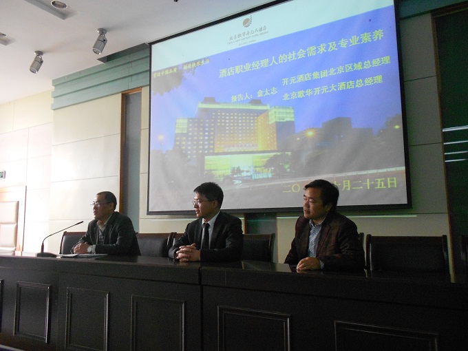 近日,中国最大的民营高星级连锁酒店集团、开元酒店集团高管经验交流会暨2013届旅游管理专业管理培训生校园招聘会在国旅学院实验楼101教室隆重举行,开元酒店集团北京区域总经理、北京歌华开元大酒店总经理、威尼斯8866992001届毕业生金太志先生莅临现场宣讲,与师大的学弟学妹们探讨就业心得,分享成功经验,规划励志人生。
