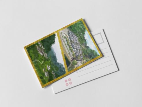 一个个乡村旅游项目与配套设施逐渐建成,昔日的泥巴路变成宽阔洁净的水泥路,土坯房变成了白墙黛瓦小楼房,民宿客栈生意红火,农家乐客来客往,旅游发展催生的“美丽蝶变”让村子里的人民过上了越来越好的幸福生活。脱帽换貌主题插画采用手绘风格,将大湾村的现状与旧状进行了对比,现状置于上方,原貌置于下方,新旧的对比强烈,彰显了大别山精神。